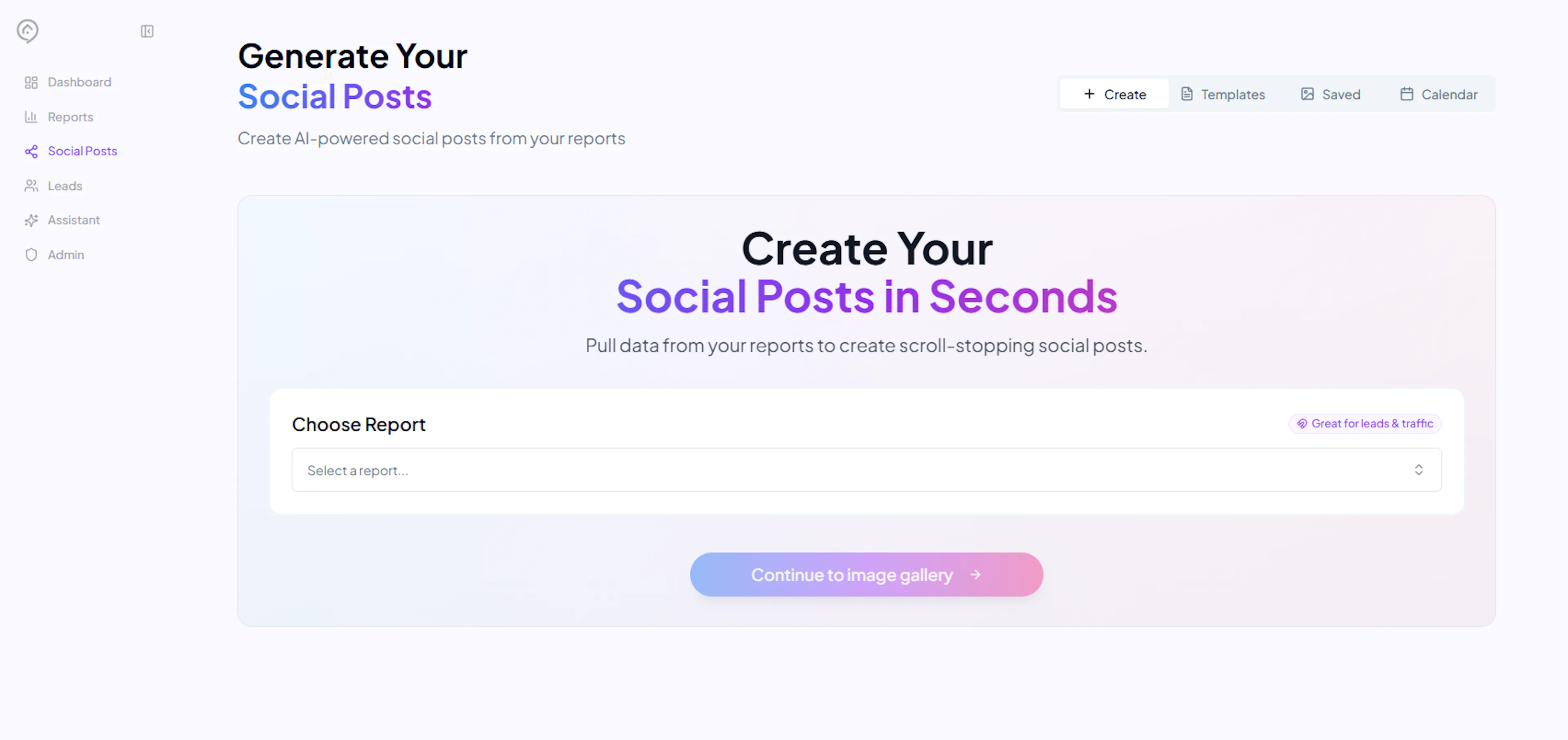 You can optionally link a post to one of your existing reports. This pulls in real market data (average prices, trends, demand) as variables for your caption.